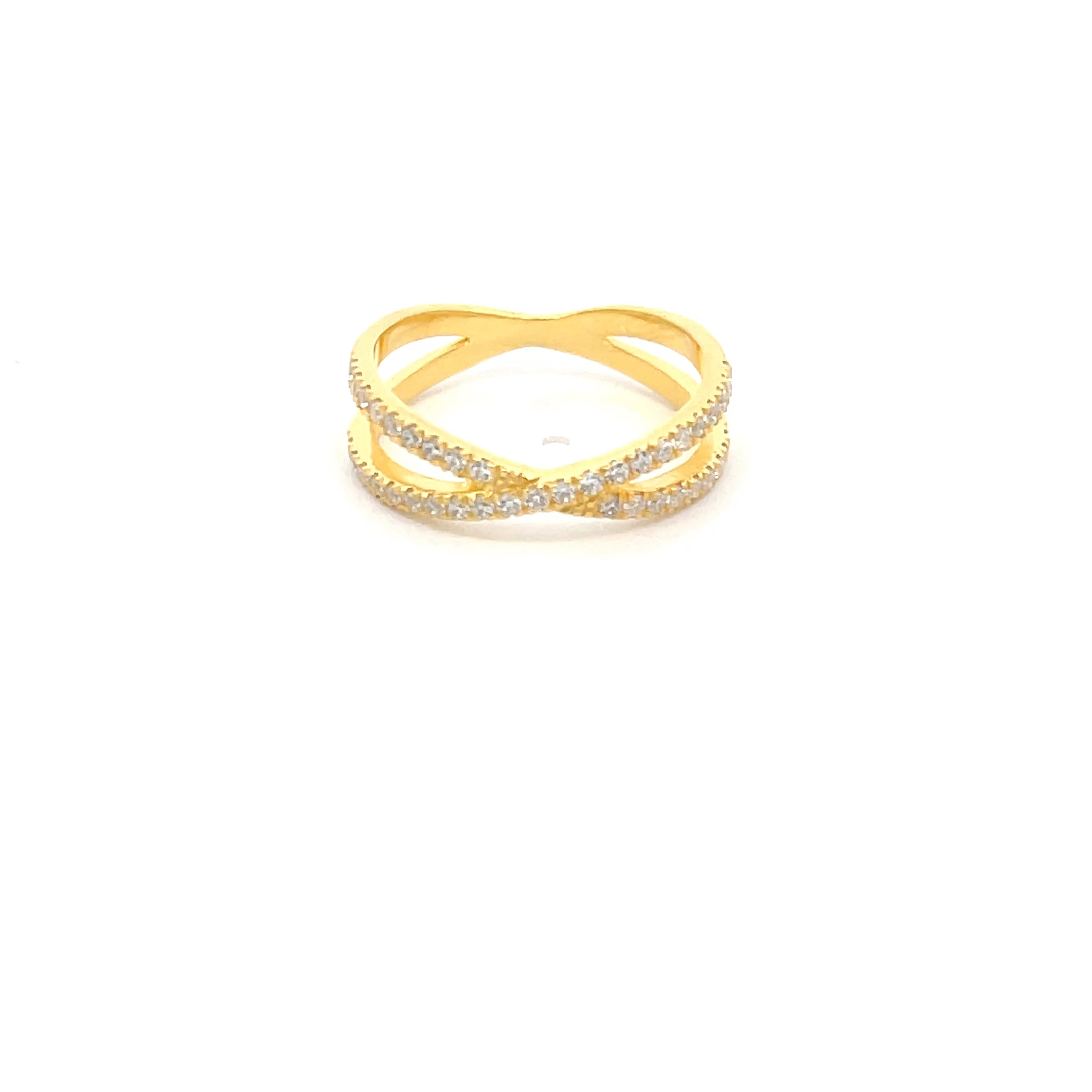 925er Silber, 14 Karat Gelbgold, Criss-Cross-Ring mit Zirkon-Akzenten