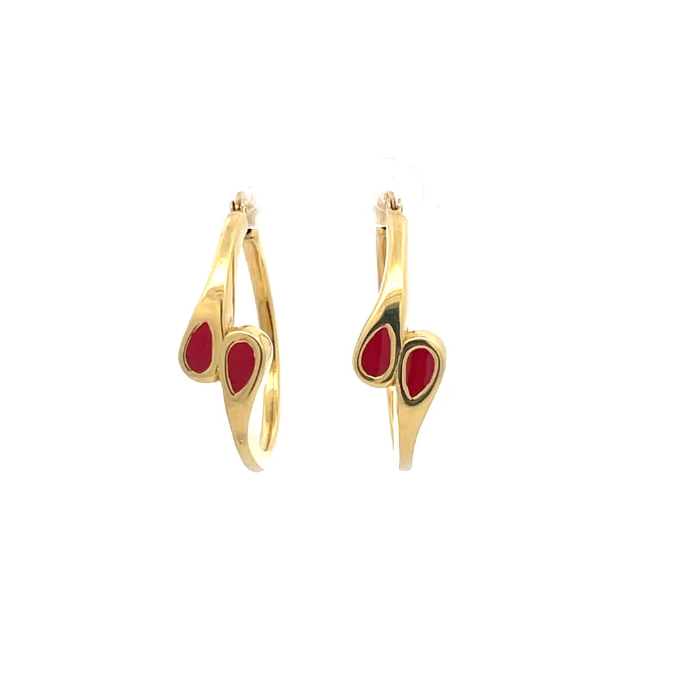 Creolen aus 925er Sterlingsilber, 14 Karat gelbvergoldet, mit roten Emaille-Akzenten