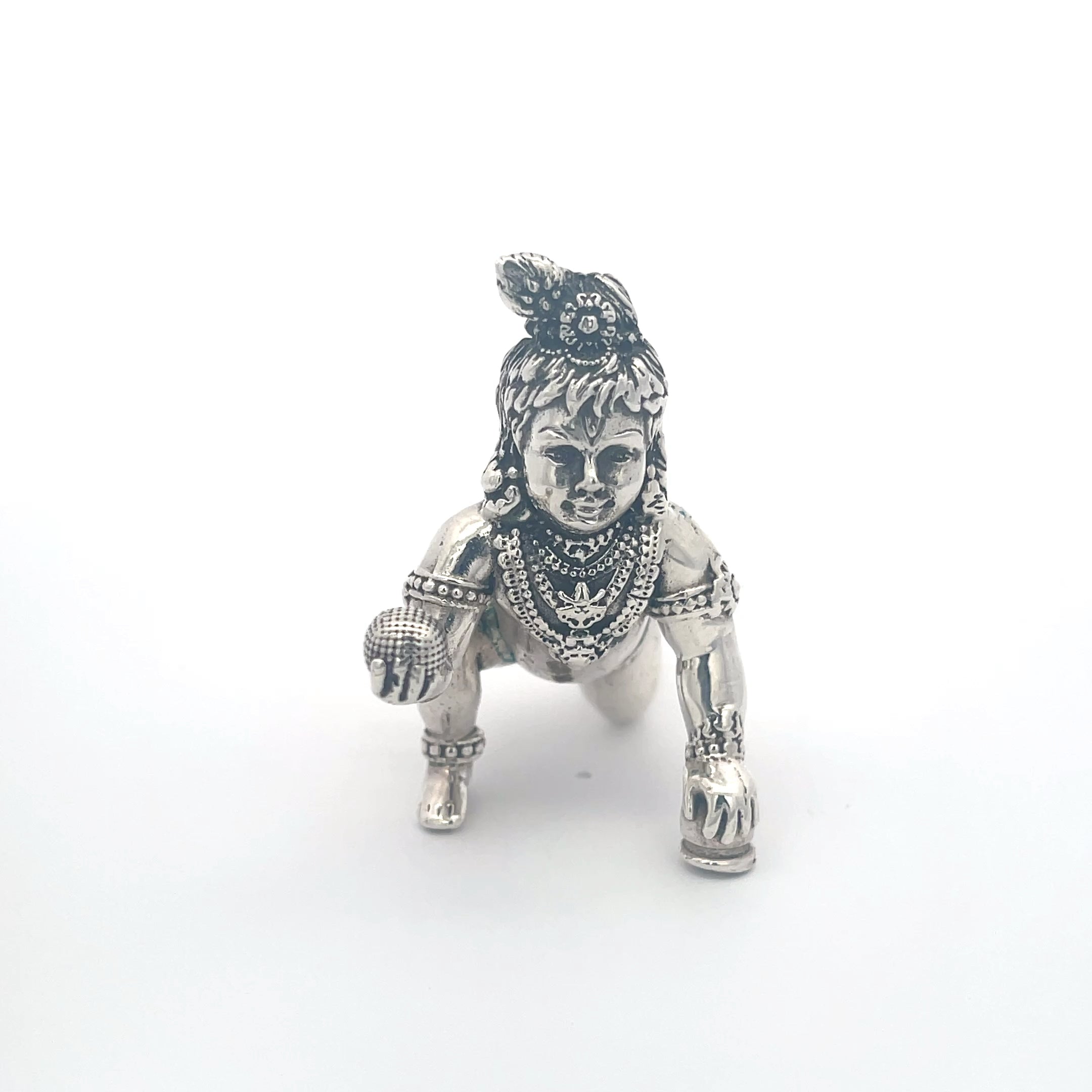 925 Silber Laddoo Gopal Idol – Bal Krishna mit Butter