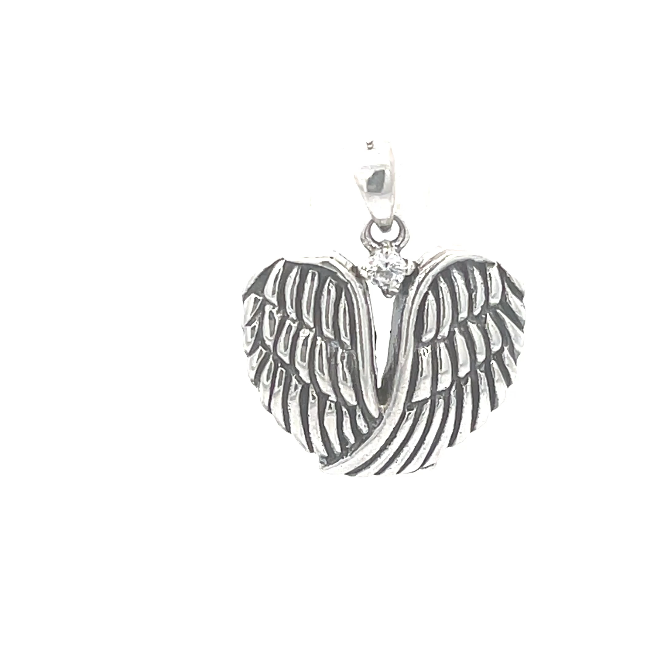 925 Silber Oxidierter Engelsflügel Herz Anhänger