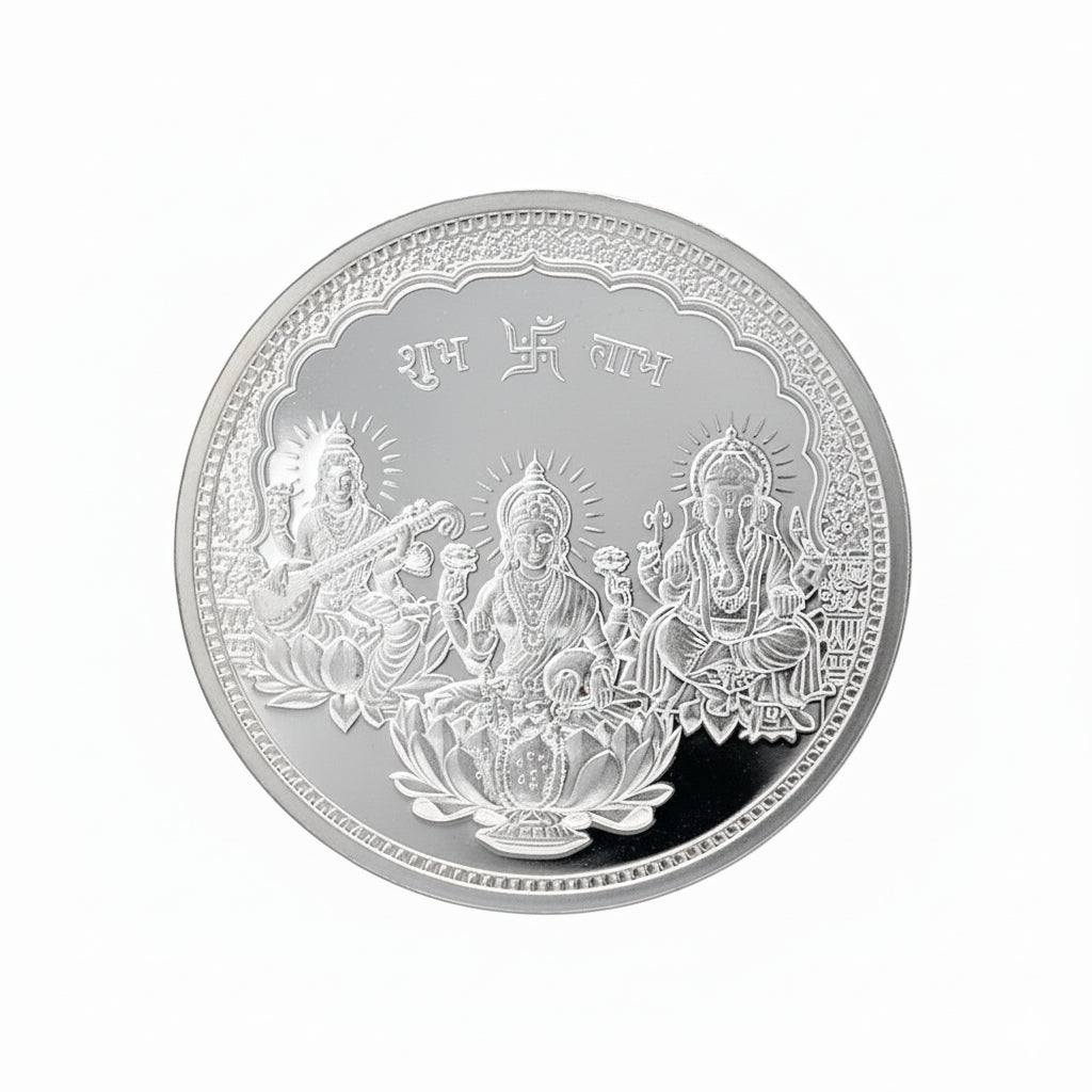 999 Silber 10 g Lakshmi Ganesh Saraswati Münze mit Om-Design