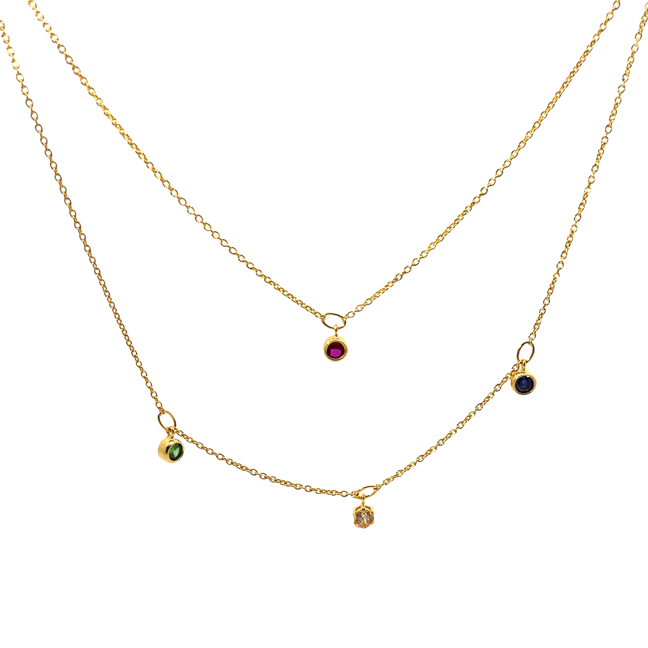 925 Silber vergoldete mehrreihige Halskette mit bunten Steinen für Damen und Teenager