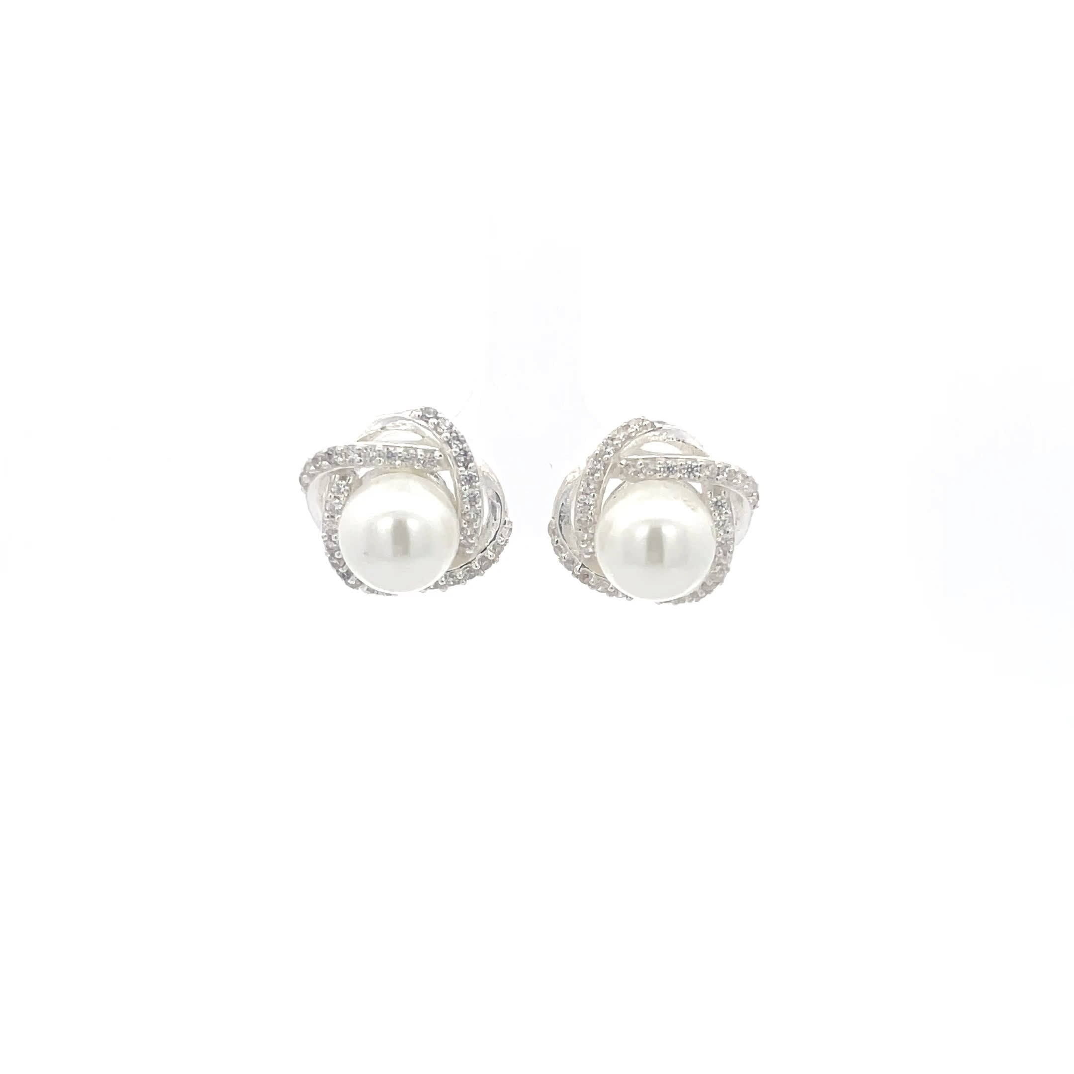 925 Silber Perlenohrstecker mit Kristallakzenten