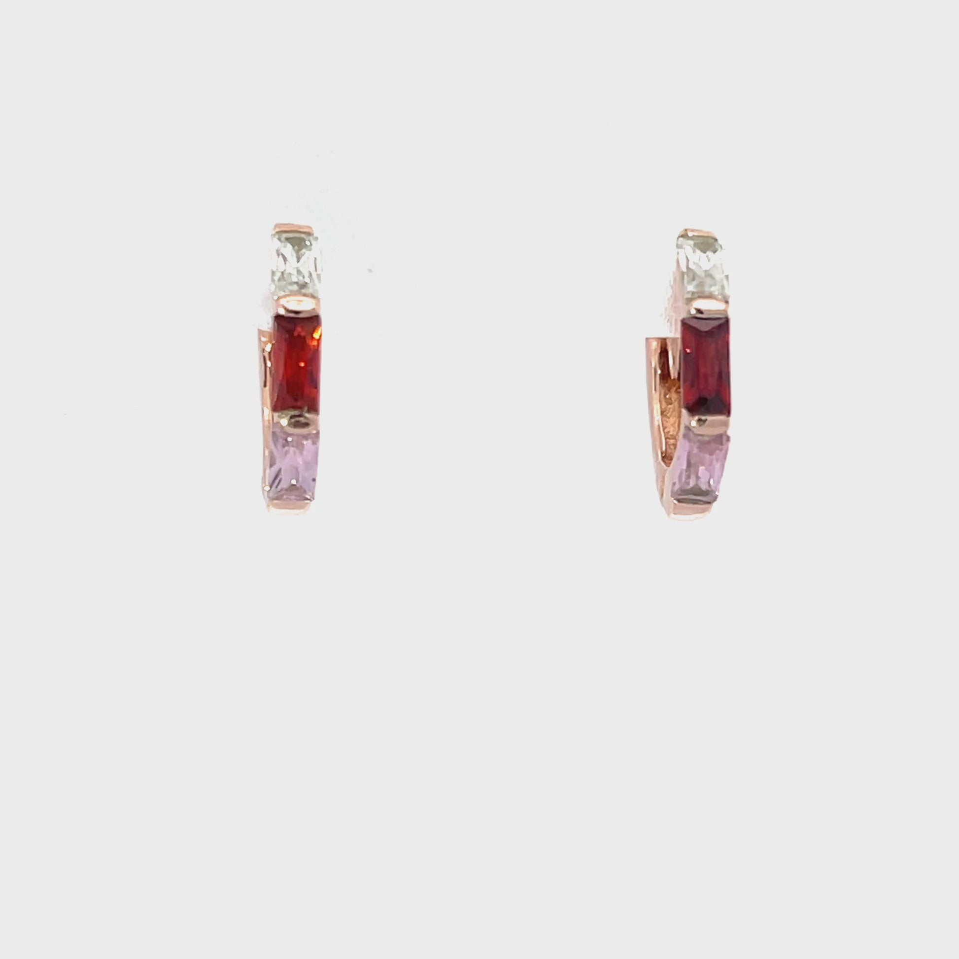 Verleihen Sie Ihrem Alltagslook mit diesen rosévergoldeten Creolen einen Hauch verspielter Eleganz. Besetzt mit Baguette-Kristallen in klarem, rubinrotem und zartem Rosa verleihen sie dem klassischen Funkeln eine moderne Note. Diese Mini-Creolen aus hautverträglichen, nickelfreien Materialien sind leicht, sicher und sanft zu empfindlichen Ohren – perfekt für den Alltag, als Geschenk oder um Ihrem Kleinen etwas Verspieltes und Ausgefallenes zu verleihen.