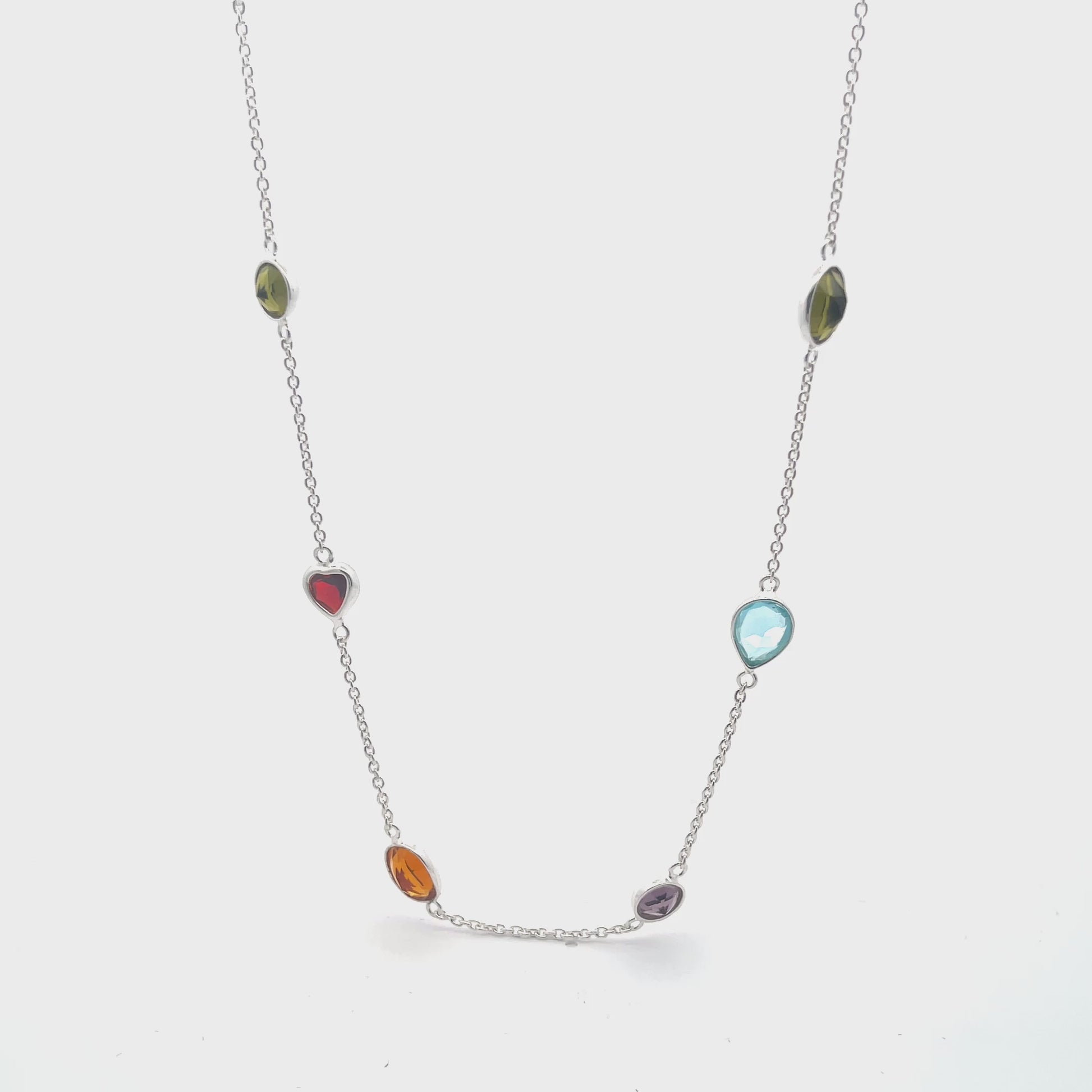 Verleihen Sie Ihrer Sammlung mit dieser leuchtenden Silberkette mit bunten herzförmigen Steinen einen Hauch von Farbe. Die Kette aus 925er Sterlingsilber ist in eine Zargenfassung gefasst, um ihre Brillanz und ihren Farbton hervorzuheben. Dank der leichten Kette lässt sie sich perfekt kombinieren oder solo tragen. Dieses verspielte und zugleich elegante Design passt sowohl zu lässigen als auch zu festlichen Looks und ist ein vielseitiges Schmuckstück für jeden Schmuckliebhaber.