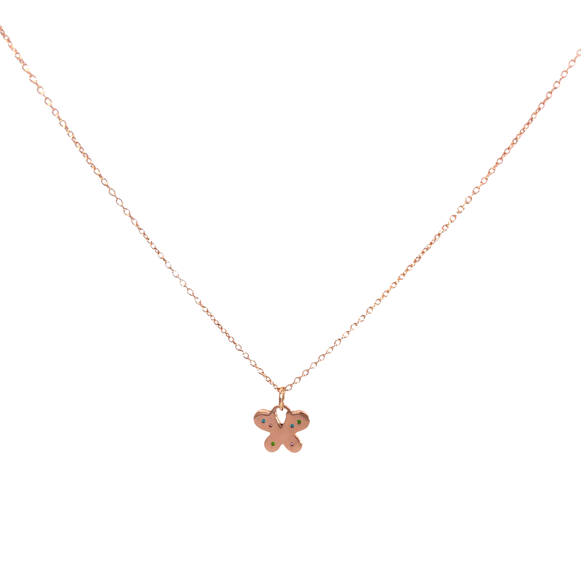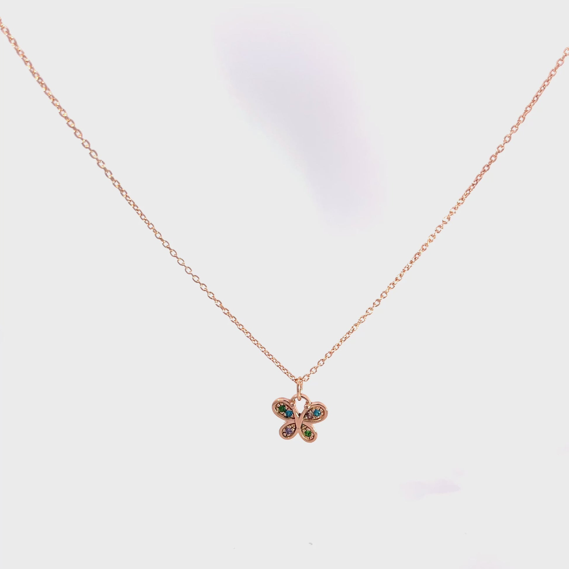 Halskette mit Schmetterlingsanhänger aus 925er Silber, rosévergoldet, mit farbigen Steinen