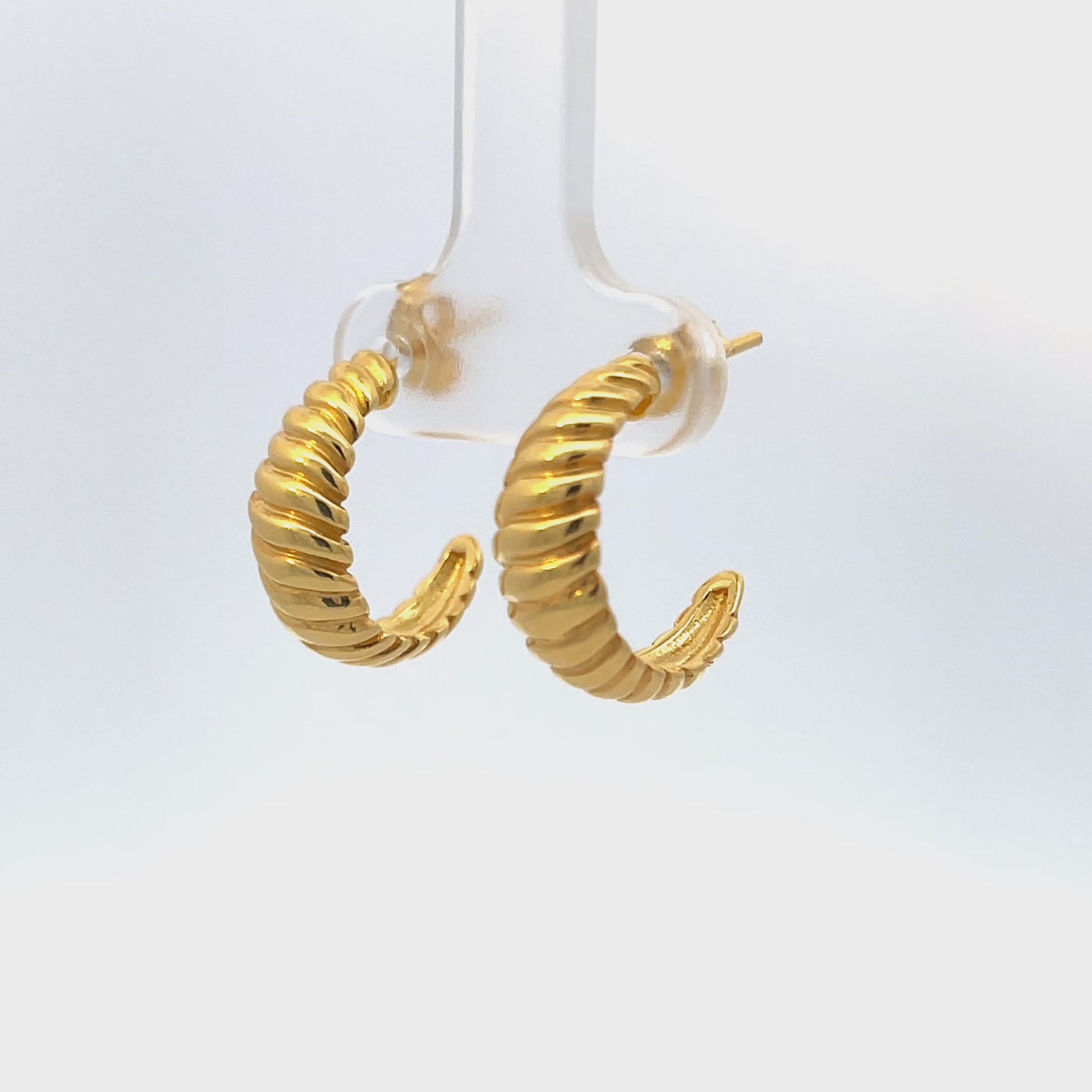 Verleihen Sie Ihrem Look sofort Glamour mit diesen auffälligen, gedrehten Creolen aus 925er Sterlingsilber mit luxuriöser Goldbeschichtung. Ihre skulpturale Struktur und die offene Silhouette setzen ein markantes Statement für jedes Outfit – vom Anzug bis zur Abendgarderobe. Diese Creolen für Damen bieten leichten Tragekomfort und zeitlose Eleganz und sind ein Must-have für Ihren Schmuck.