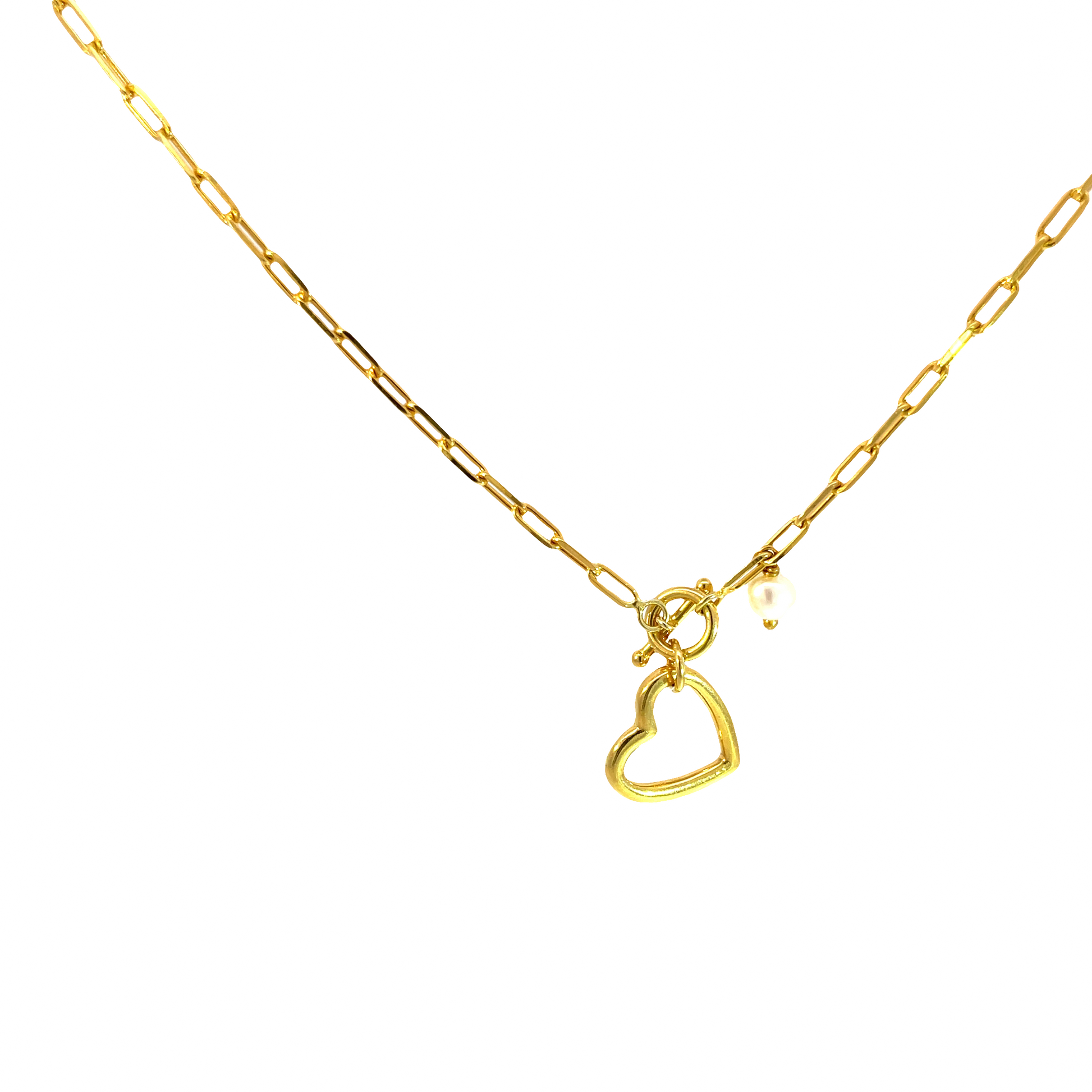 Süß und stilvoll: Diese vergoldete Herzkette aus 925er Silber ist Ihr neuer Lieblingsschmuck für jeden Tag. Die offene Gliederkette trifft auf einen Knebelverschluss, akzentuiert mit einer zarten Perle und einem Herzanhänger – mühelos tragbar und feminin. Ideal für die Arbeit, den Brunch oder zum Kombinieren mit anderen Schmuckstücken – perfekt für Frauen, die bedeutungsvollen Stil lieben. Bequem, vielseitig und so konzipiert, dass sie überall glänzt, wo der Tag Sie hinführt.