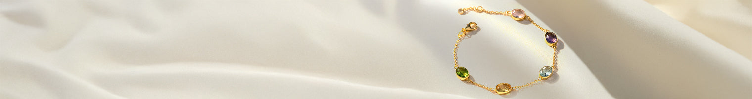 Multicolor Gemstone Bracelet in Gold Polish on Silver - Elegant & Vibrant