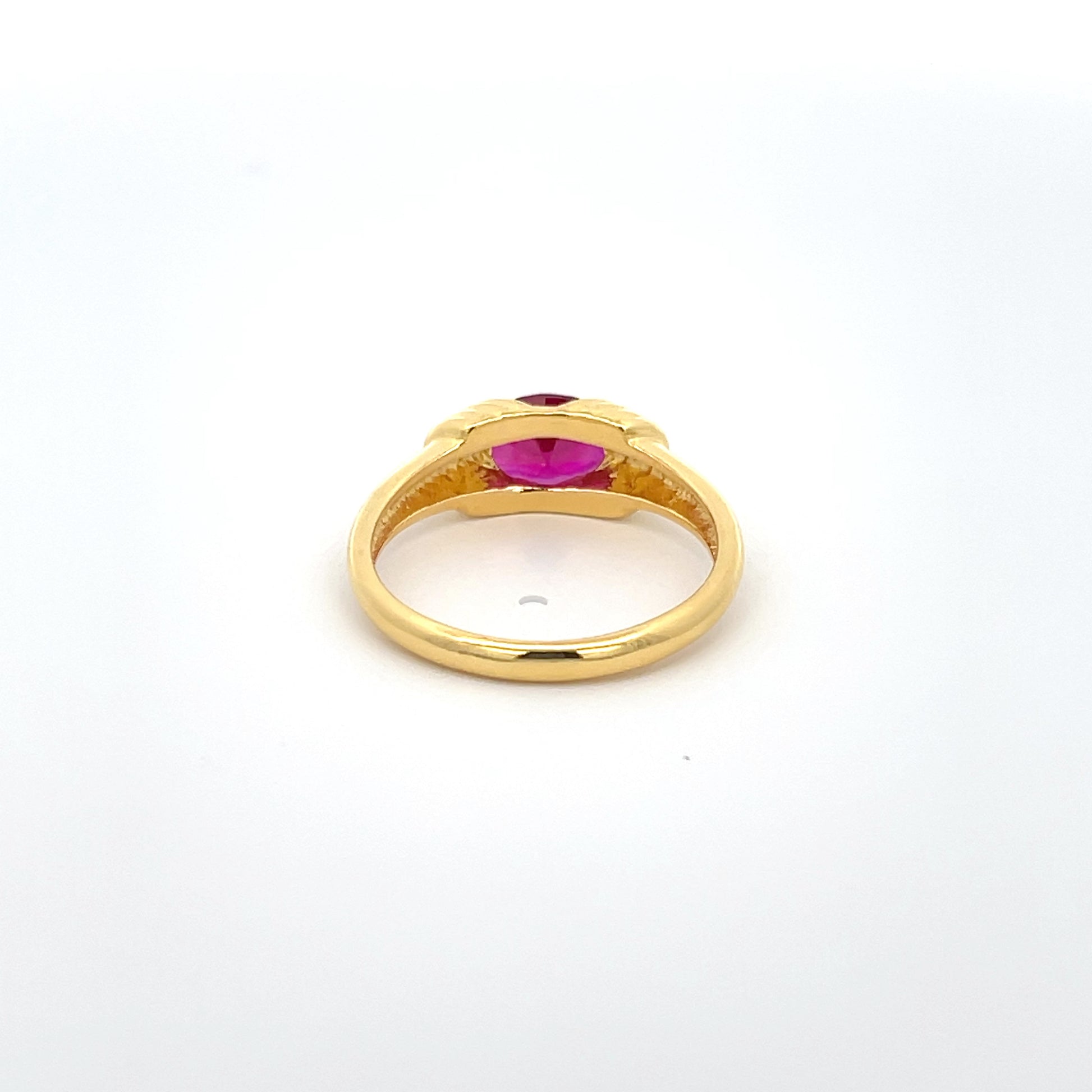 Add a pop of passion to your collection with this 925 silver ring plated in 14K yellow gold. At its heart lies a dazzling ruby red zircon, wrapped in a warm golden embrace. Perfect for young women who love jewelry with bold color and elegance, ideal for evening wear or gifting.