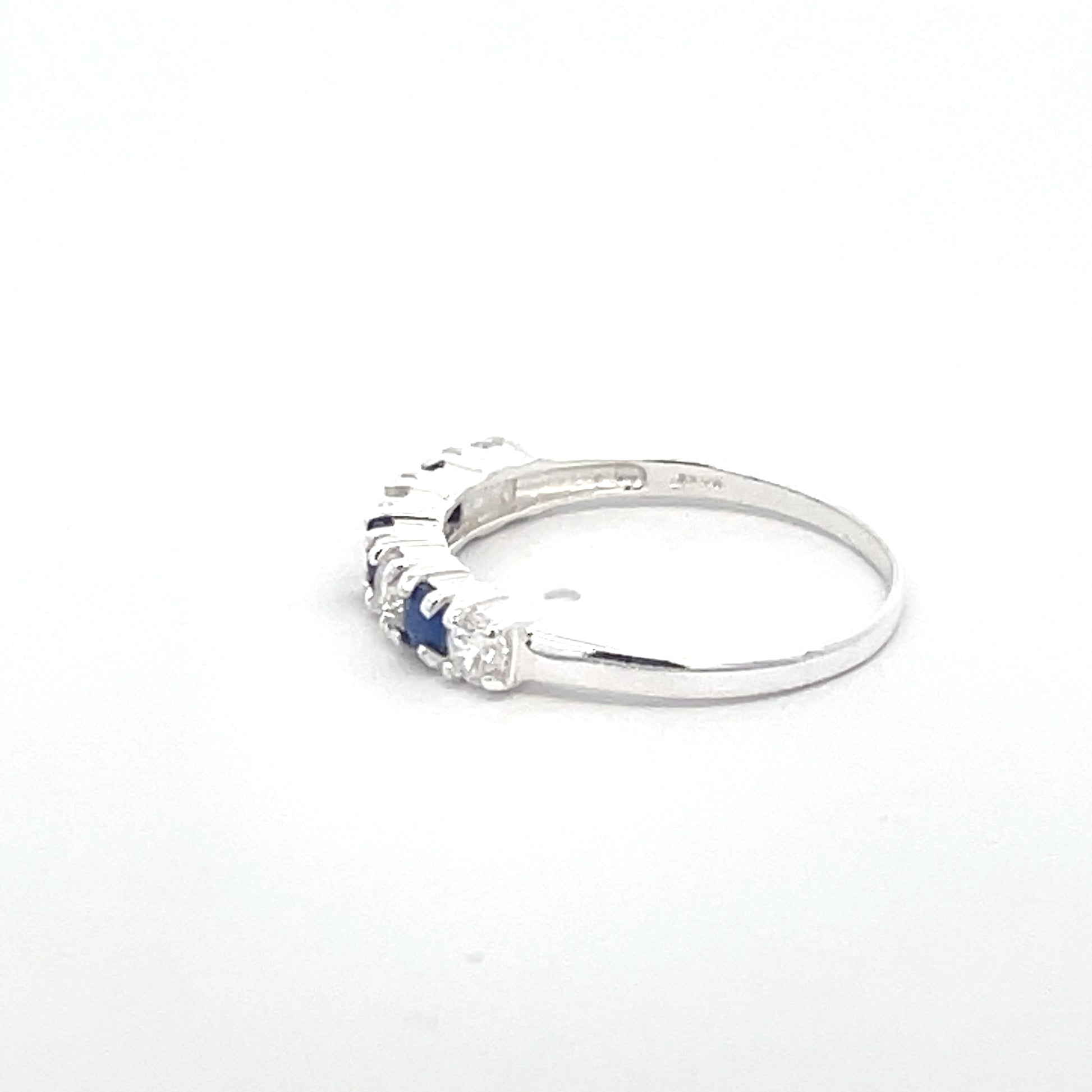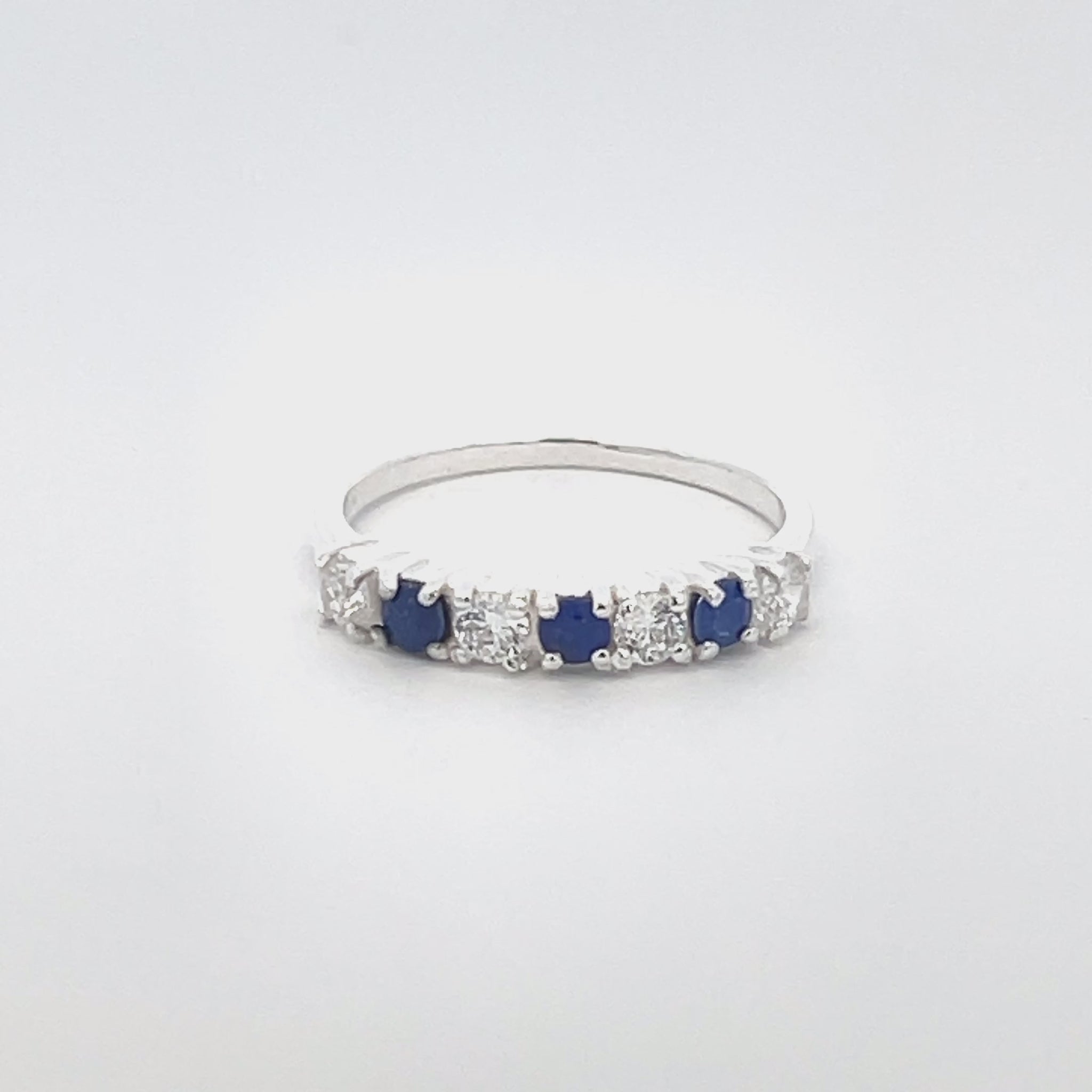 This graceful 925 silver band ring is adorned with alternating blue and white zircon stones, creating a striking balance of elegance and charm. Perfect for young women who adore timeless sparkle, it’s a versatile accessory for both casual and formal occasions.