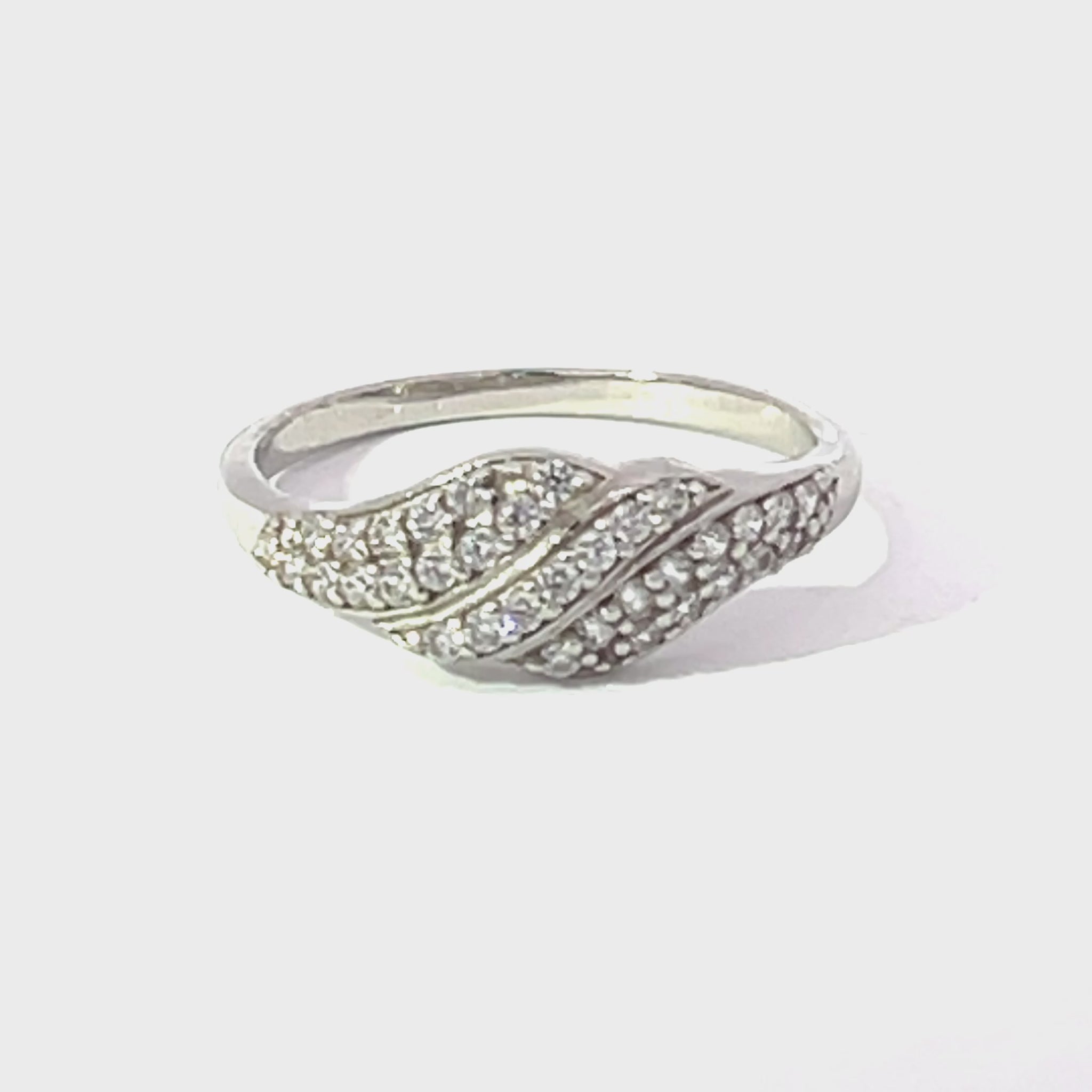 925 Silver Leaf Ring with Cubic Zirconia Accents