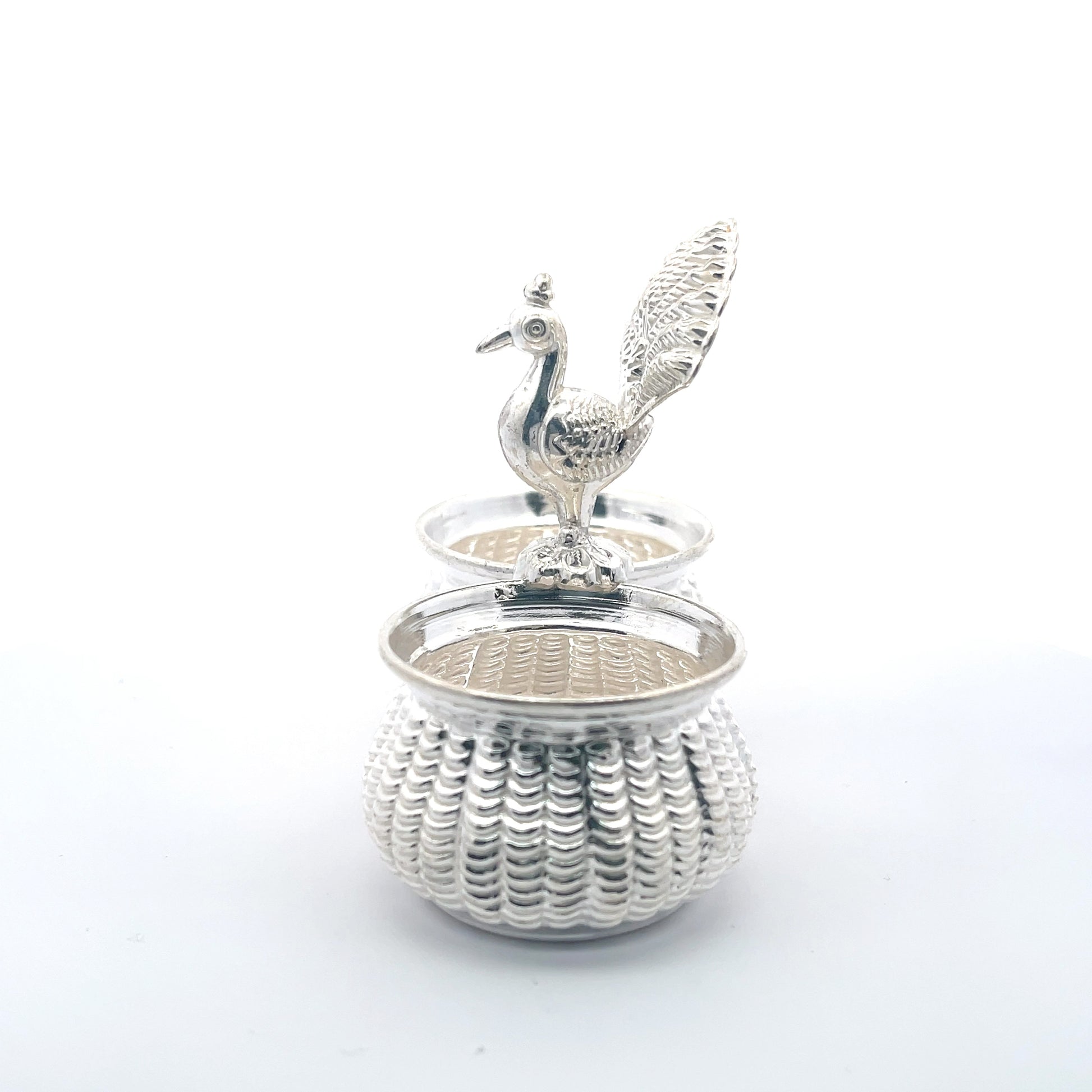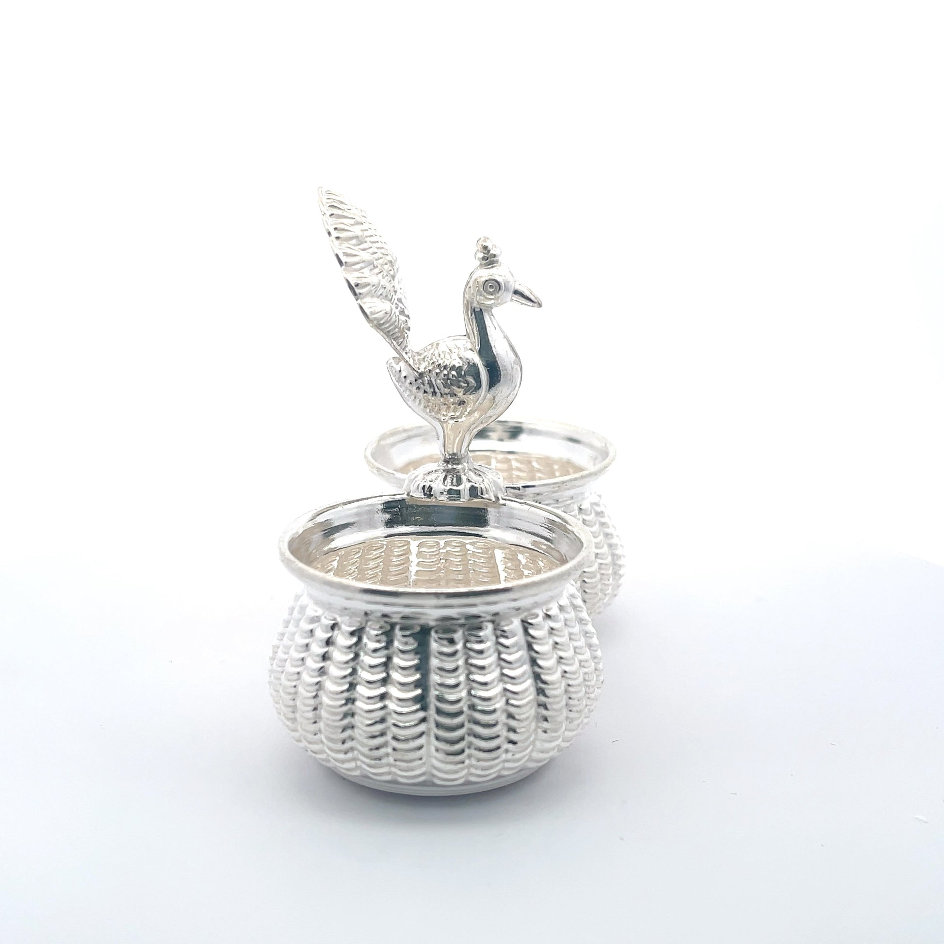 925 Silver Medium Haldi Kumkum Set with Peacock Design