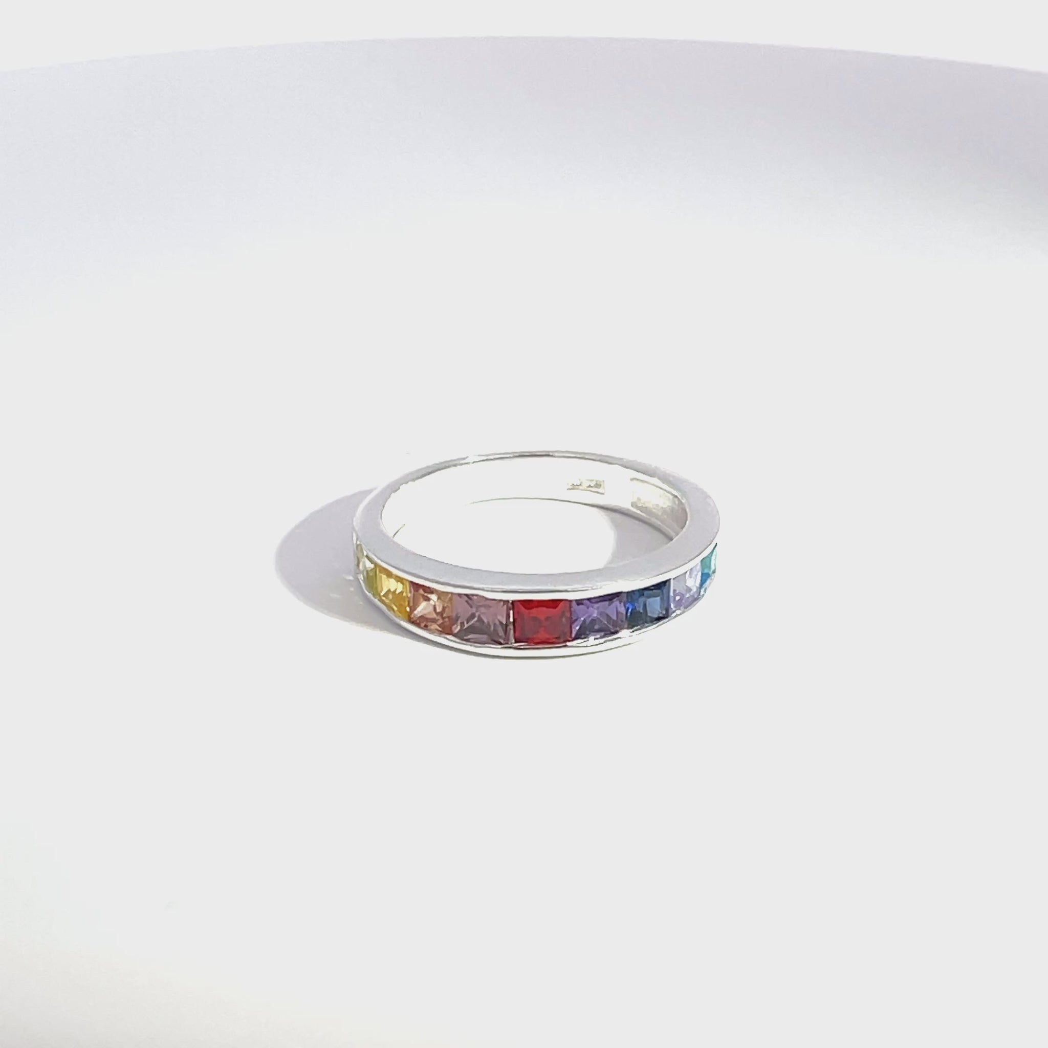 925 Silver Multicolor Zircon Band Ring – Rainbow Sparkle