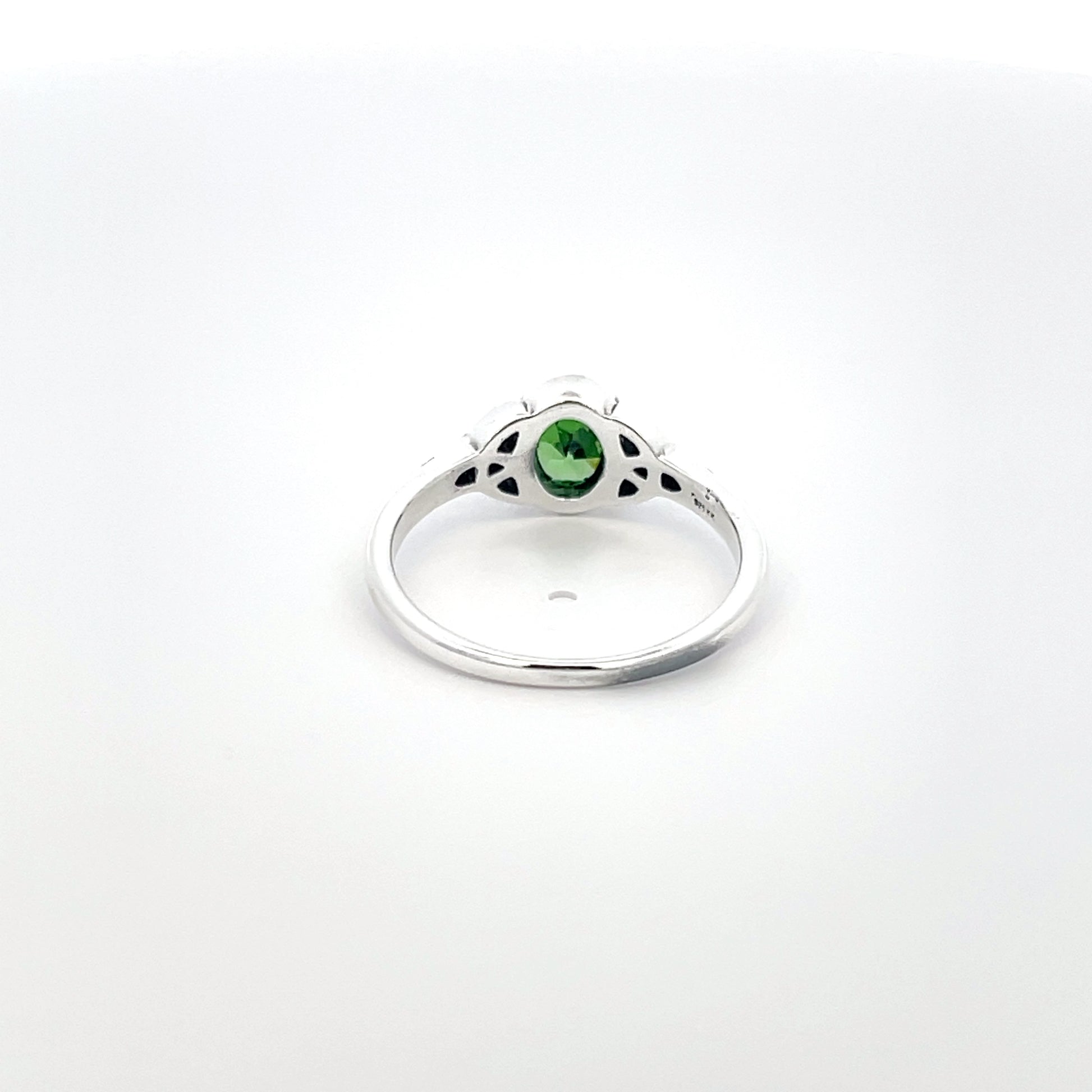 This 925 silver ring is crowned with a vivid green zircon stone, framed by delicate filigree-inspired accents that whisper sophistication. Its timeless charm makes it an enchanting companion for both everyday elegance and special occasions. A piece for young women who love jewelry with character.
