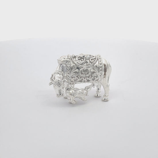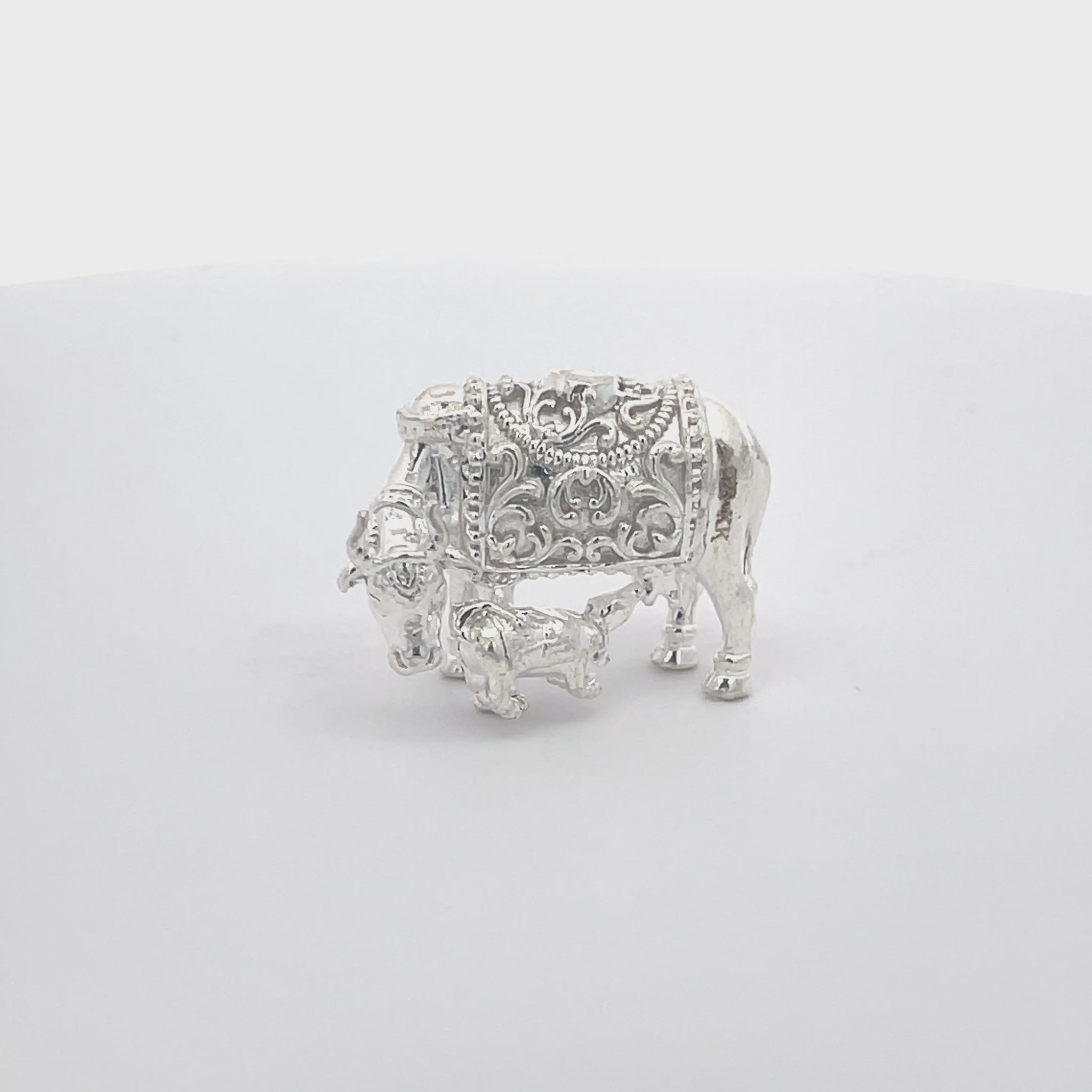 925 Silver Small Cow and Calf Idol – Ornate Design