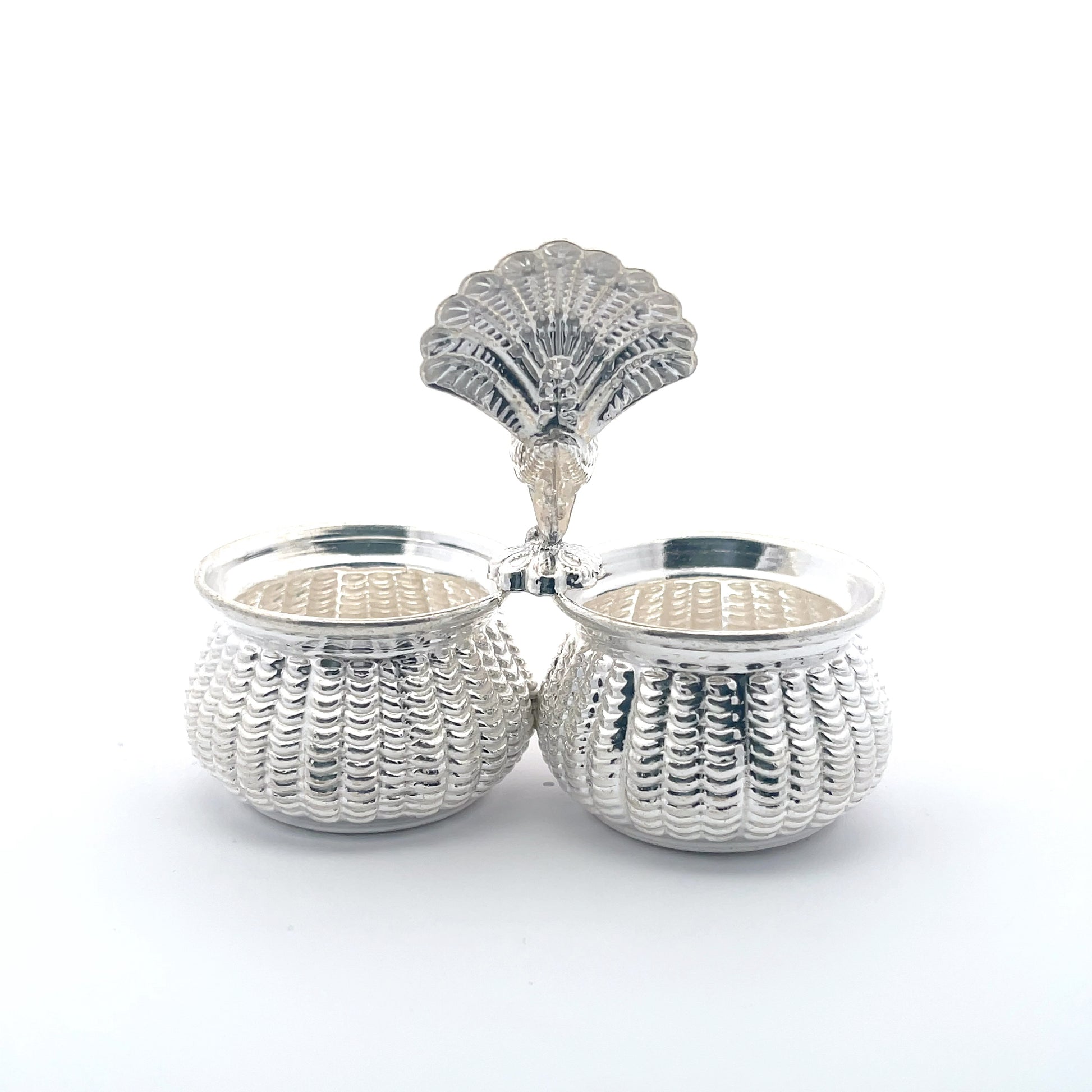 925 Silver Small Haldi Kumkum Set with Peacock Design