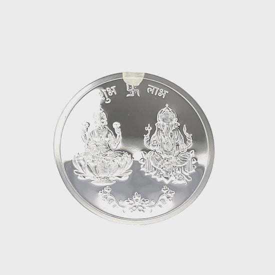 This 999 silver coin features Goddess Lakshmi and Lord Ganesh, bringing blessings of wealth and wisdom. With fine detailing and a pure finish, it makes a meaningful keepsake or gift. Available in 5g and 10g variants, perfect for festive celebrations and special occasions.