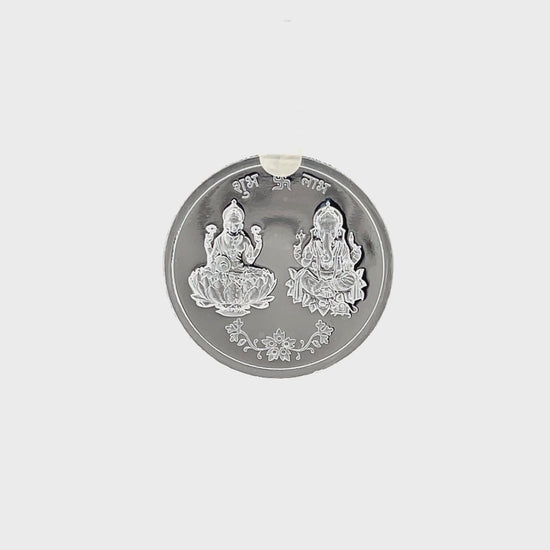This 999 silver coin features Goddess Lakshmi and Lord Ganesh, bringing blessings of wealth and wisdom. With fine detailing and a pure finish, it makes a meaningful keepsake or gift. Available in 5g and 10g variants, perfect for festive celebrations and special occasions.