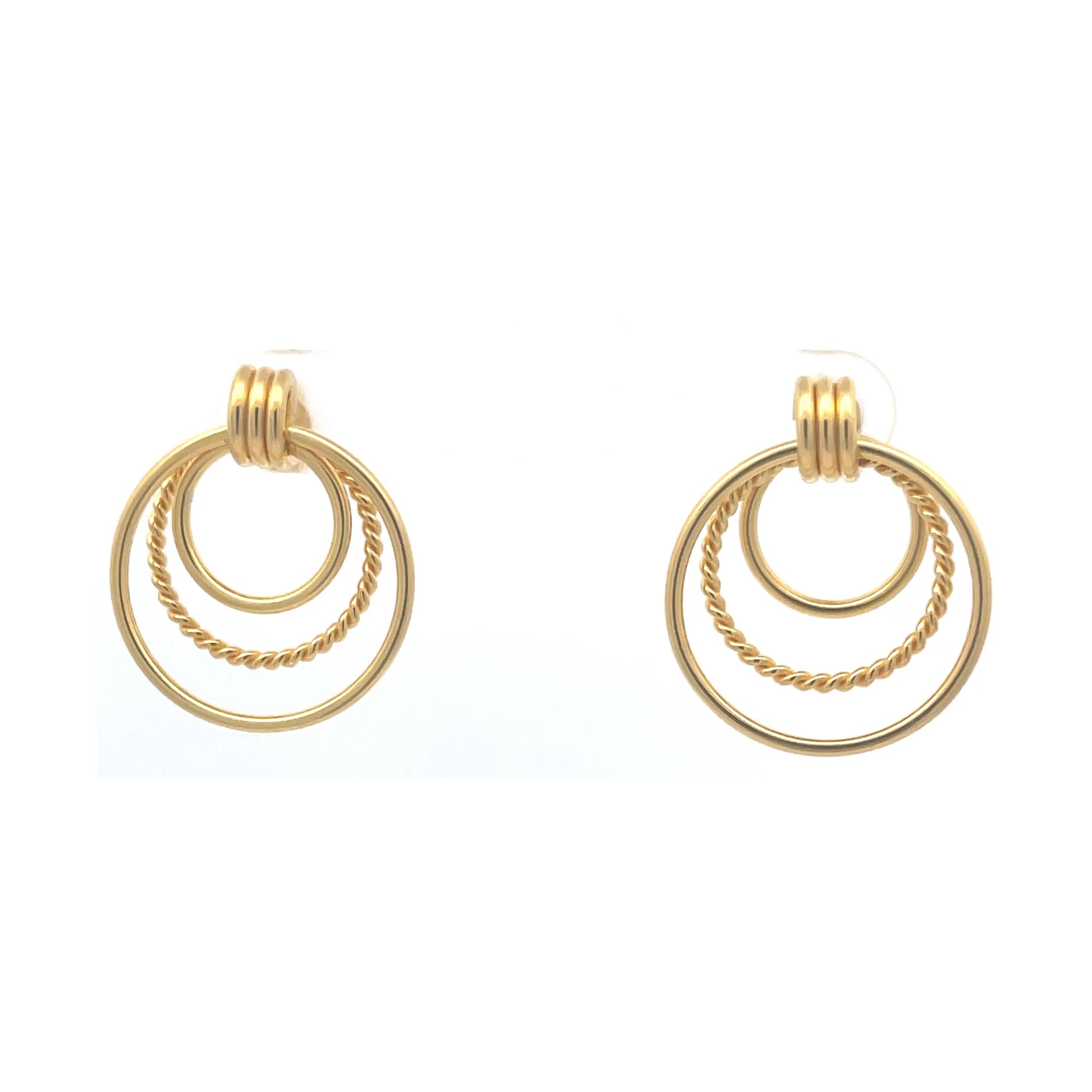Turn heads with these striking triple-circle 925 silver earrings, finished in radiant gold plating. The mix of smooth, twisted, and textured rings brings movement and elegance to your everyday wear. Lightweight and skin-friendly, these earrings are crafted from genuine 925 sterling silver, perfect for women who appreciate bold yet wearable silver jewellery. Their playful yet refined design makes them suitable for both adults and older kids seeking a trendy touch.