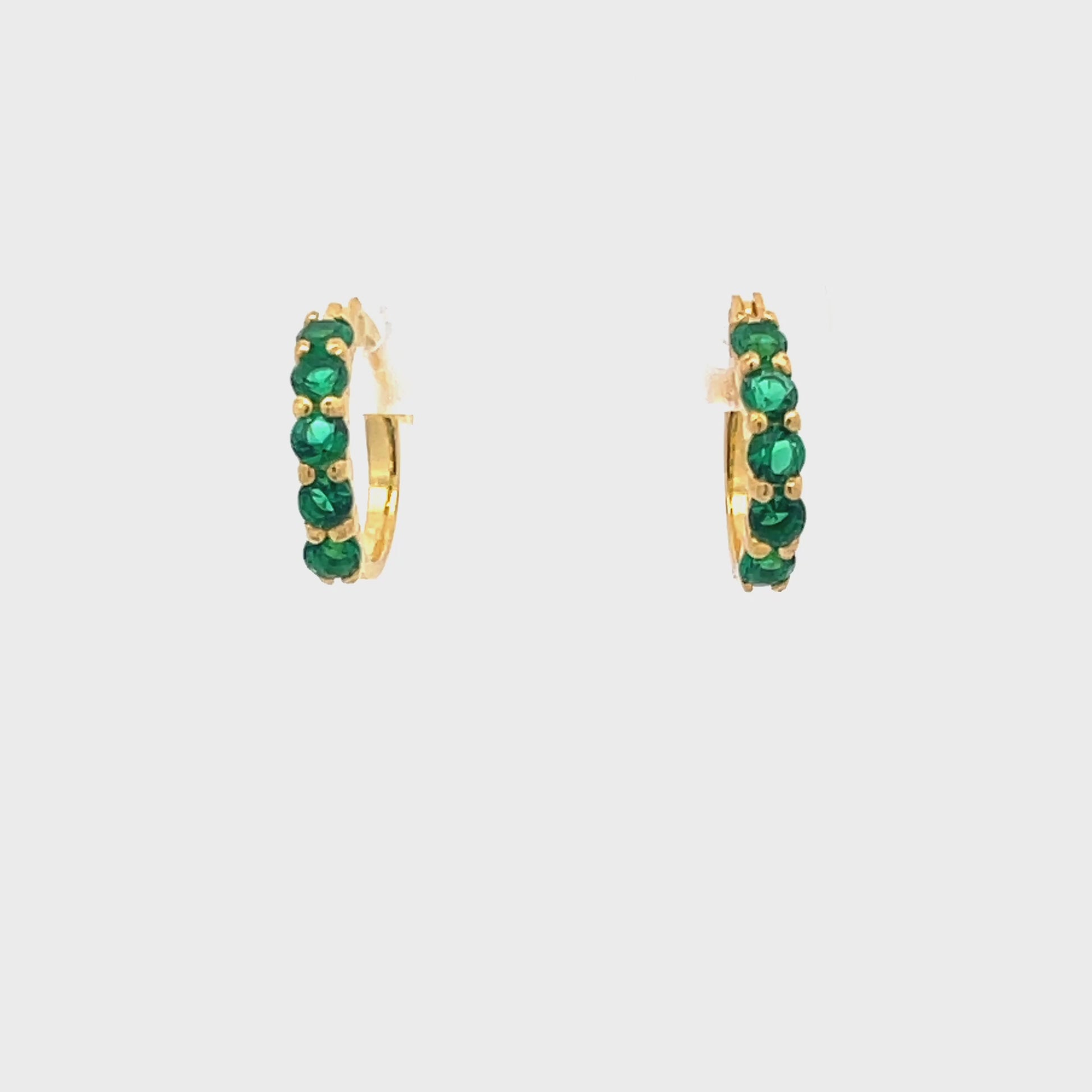 Diese modischen Creolen aus 925er Sterlingsilber sind mit 14-karätigem Gold plattiert und mit leuchtend grünen Steinen verziert. Sie setzen farbliche Akzente und sind ein schickes Accessoire für junge Frauen, die modernen und lebendigen Schmuck lieben.