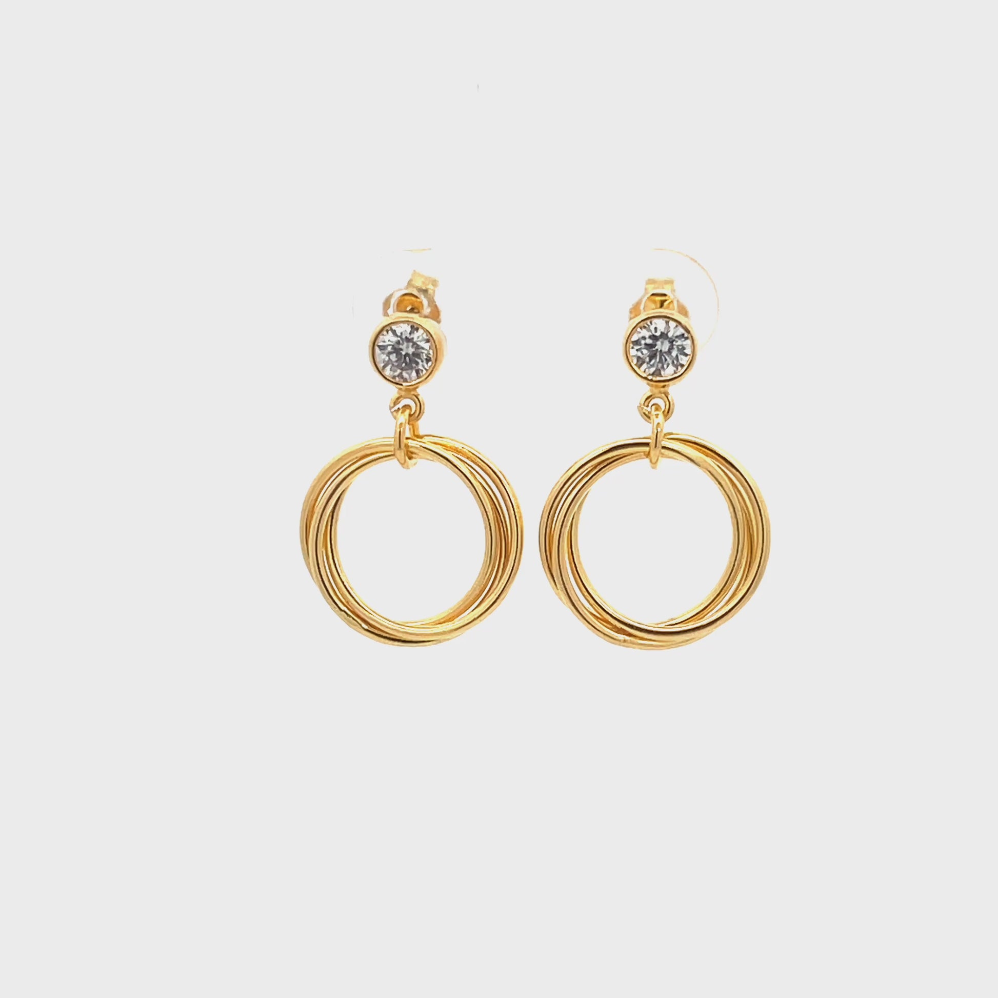 Ohrringe aus 925er Sterlingsilber, 14 Karat gelbvergoldet, mit kreisförmigem Anhänger