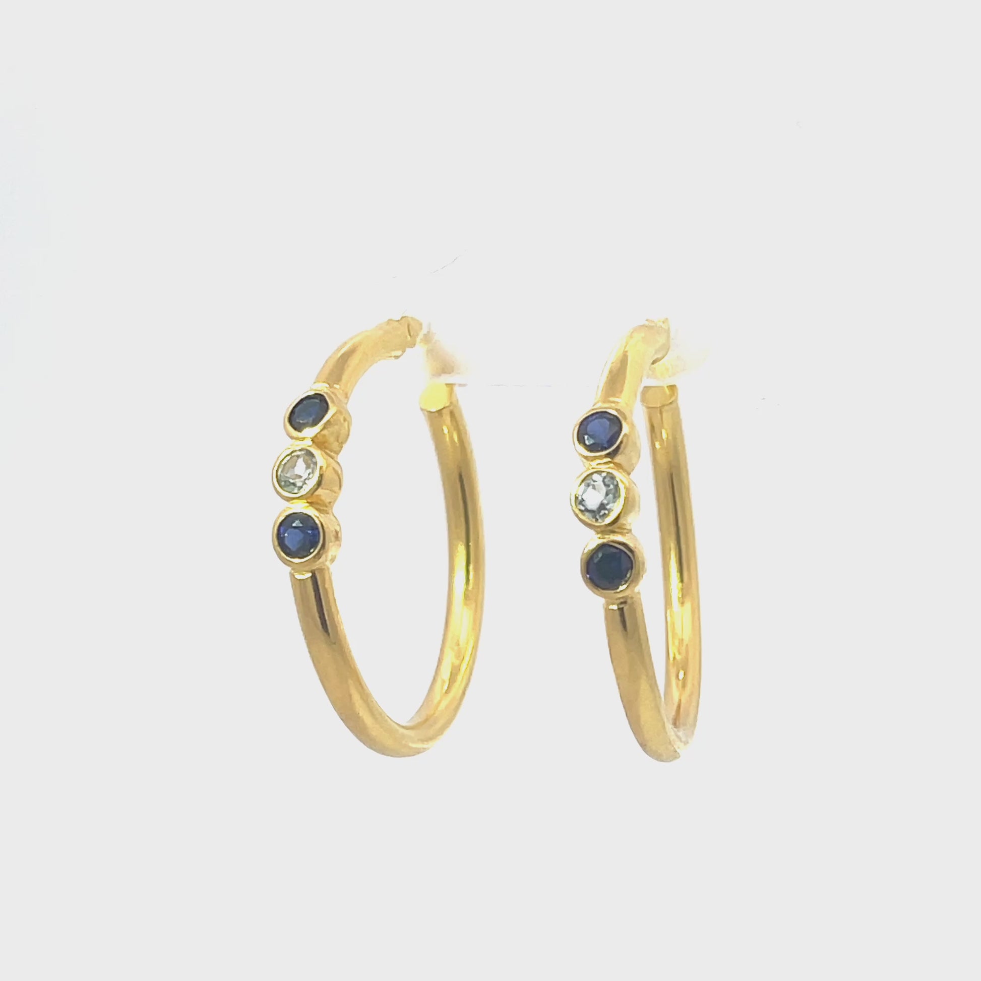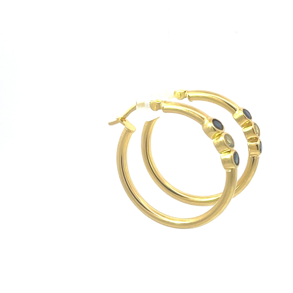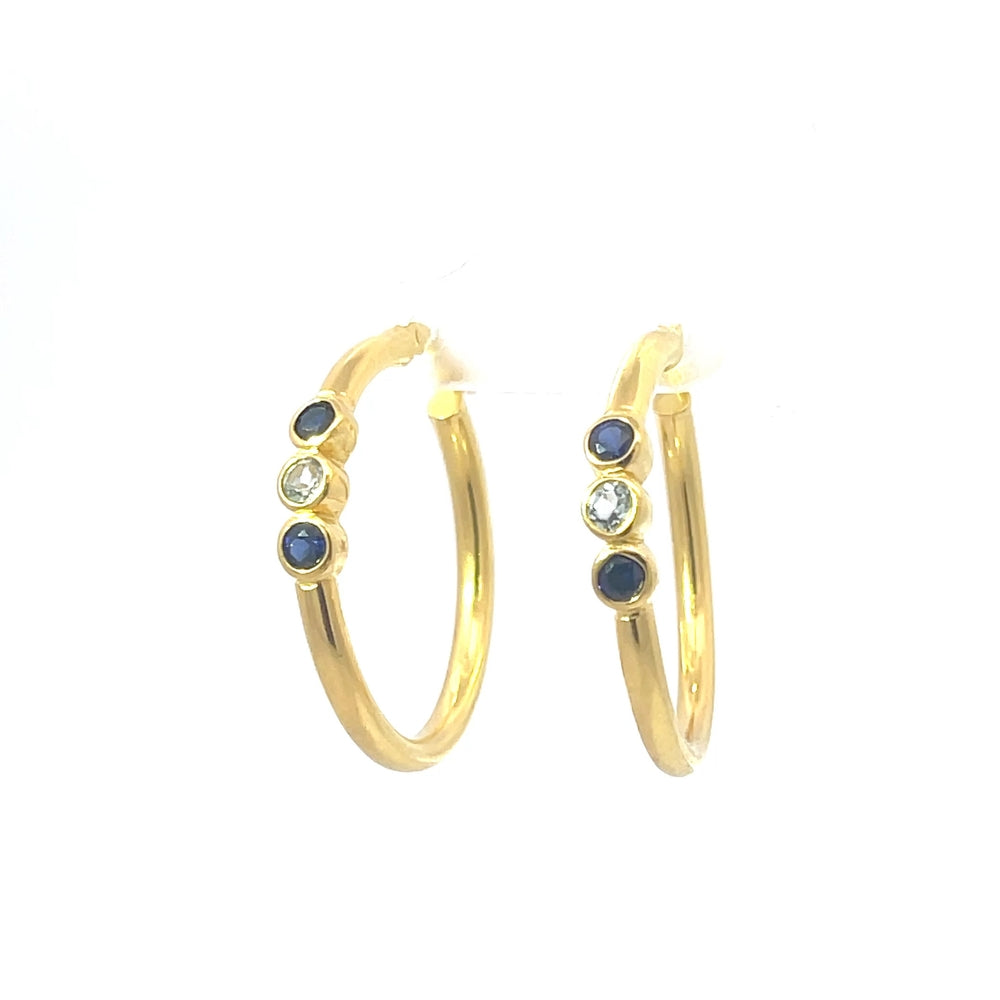 925er Silber, 14 Karat gelbvergoldet, Creolen mit blauen Steinen
