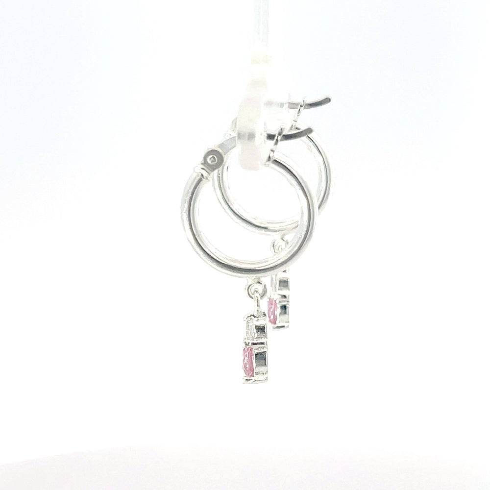 Diese bezaubernden Creolen aus 925er Sterlingsilber sind mit baumelnden rosa Steinen verziert und verleihen jedem Outfit eine verspielte Eleganz. Sie sind leicht und vielseitig und somit perfekt für junge Frauen, die Schmuck lieben, der fröhlich, stilvoll und mühelos feminin ist.