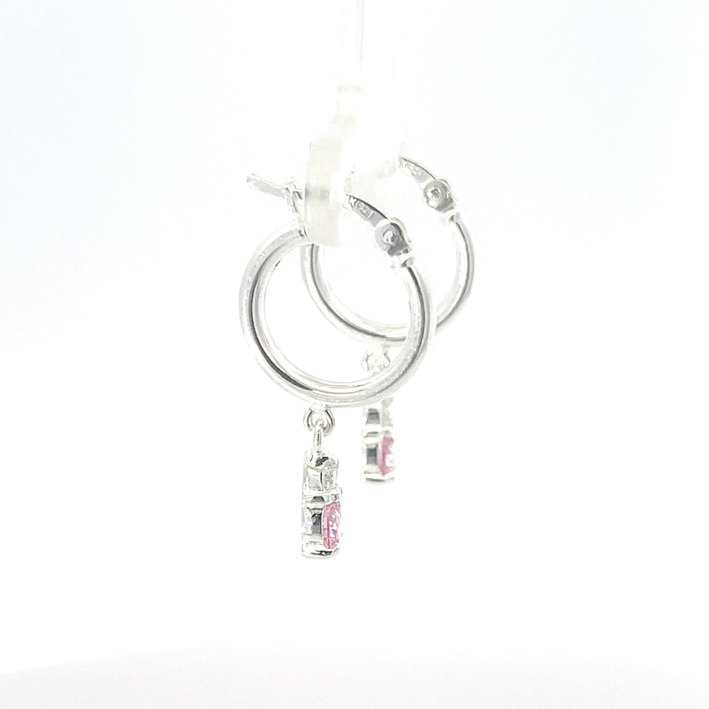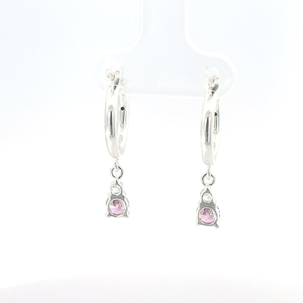 925er Silbercreolen mit rosafarbenem Steinanhänger