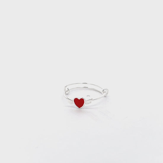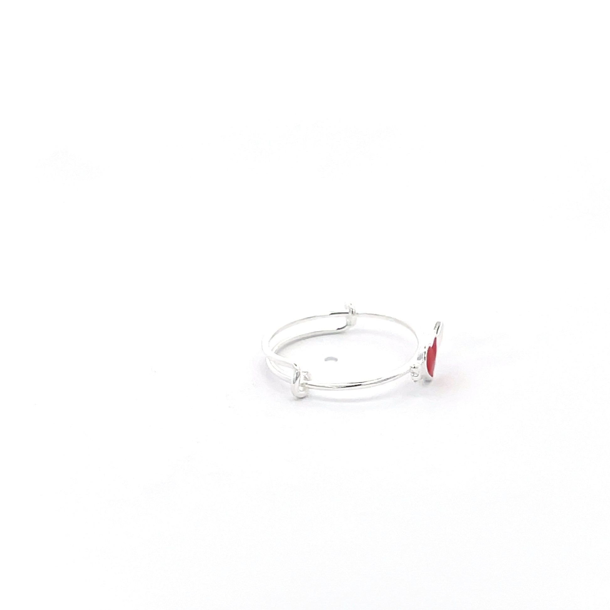 925 Silver Kids Adjustable Ring with Red Heart Accent