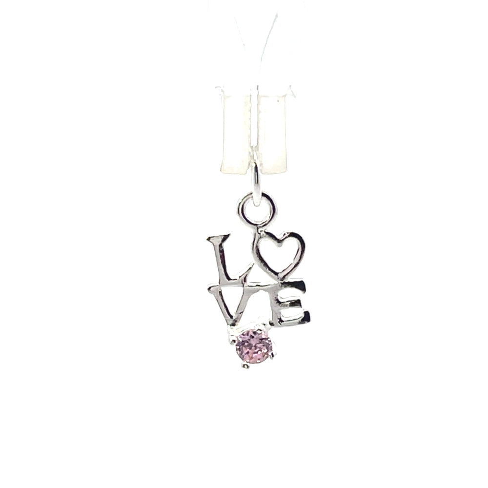 Anhänger „LOVE“ aus 925er Silber mit rosafarbenem Stein